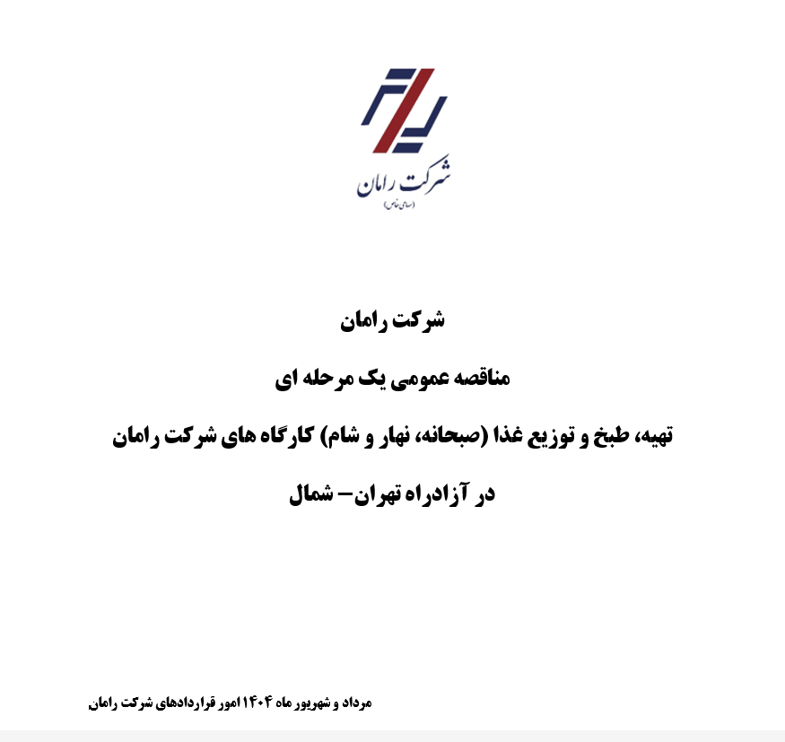 مهلت ارائه پیشنهادها به دبیرخانه شرکت رامان: تا ساعت 16 روز سه شنبه 1404/03/27